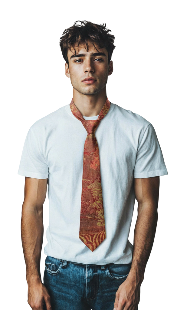 Handwoven from cashmere and silk, (80%:20%); in a pink-red savannah design; every tie is unique